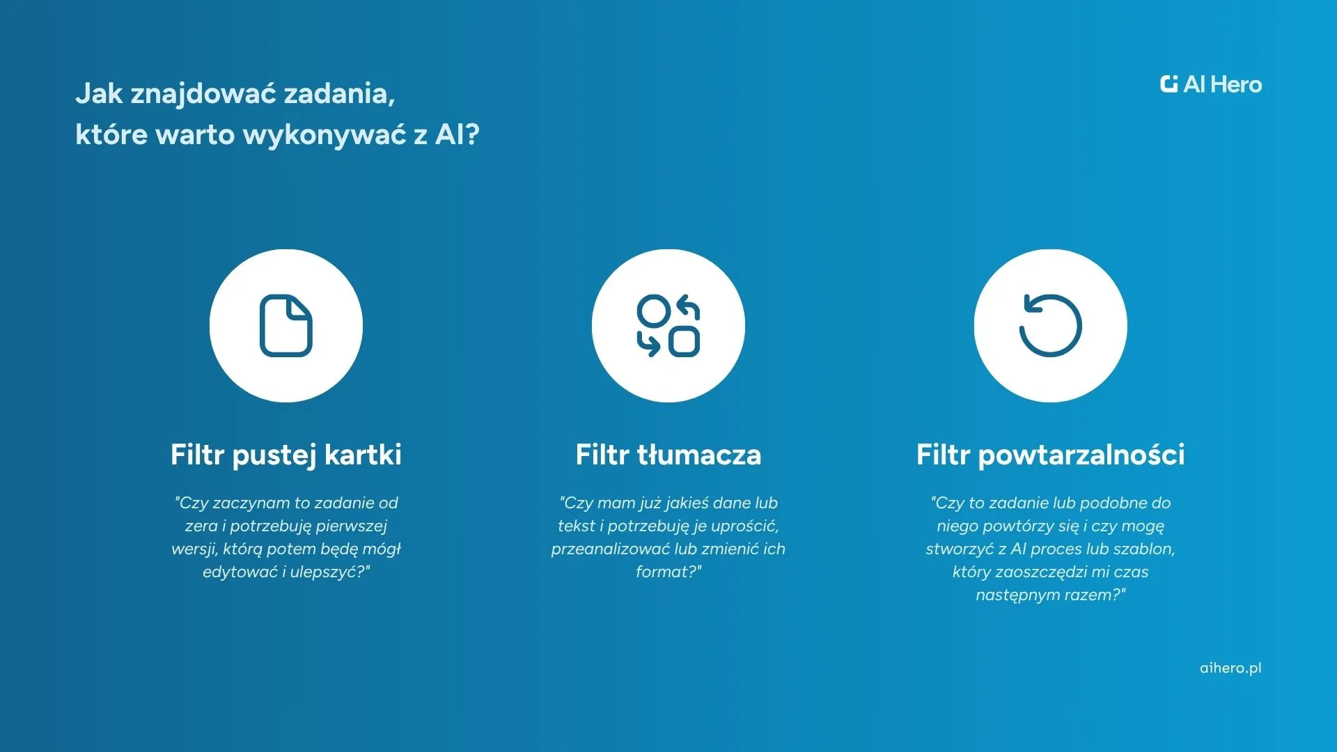 Oto trzy proste filtry myślowe. Użyj ich, by szybko zidentyfikować, które z Twoich zadań są idealnymi kandydatami do wsparcia przez AI.